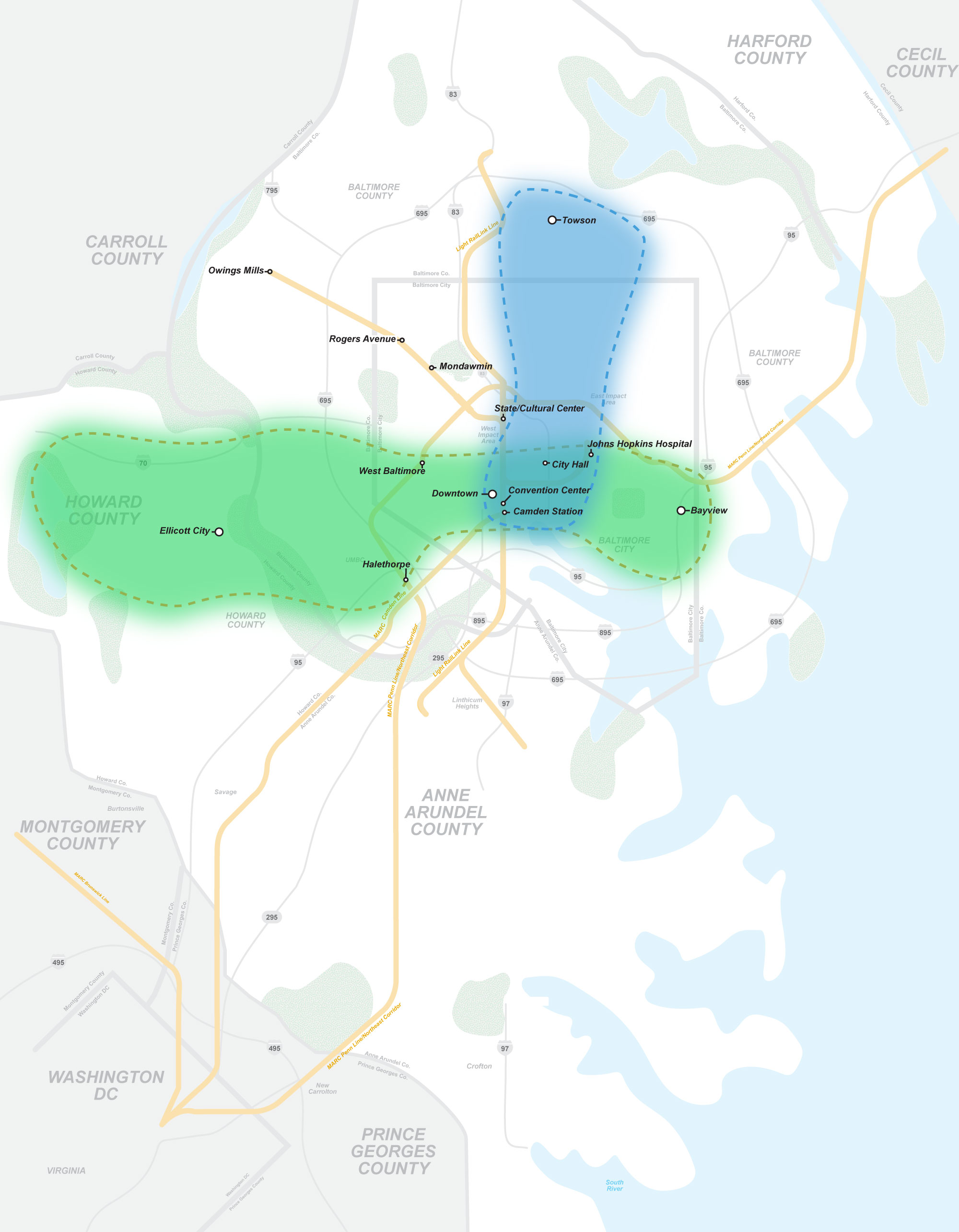 Take the survey to tell us about your goals for transit corridorsIn 2019-2020, MDOT MTA worked with the Regional Transit Plan Commission, local jurisdictions, and members of the public to prioritize transit corridors based on data showing transit readiness and potential to contribute to equitable transportation outcomes, including access to jobs and other essential trips. Starting in 2021, MDOT MTA, Baltimore City, Baltimore County, and Howard County will be studying two transit corridors: